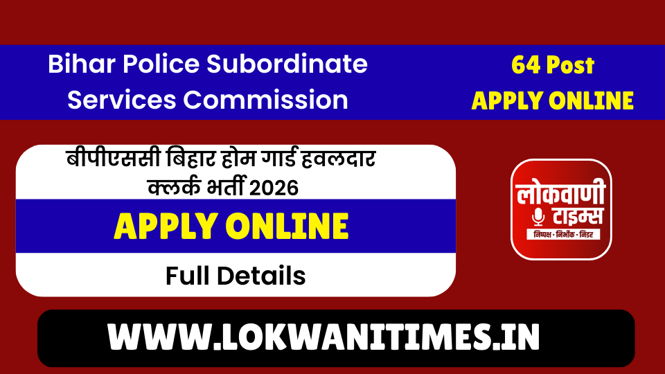 - BPSSC बिहार होम गार्ड हवलदार क्लर्क भर्ती विभिन्न पदों के लिए उम्मीदवार 05/01/2026 से 05/02/2026 के बीच आवेदन कर सकते हैं।