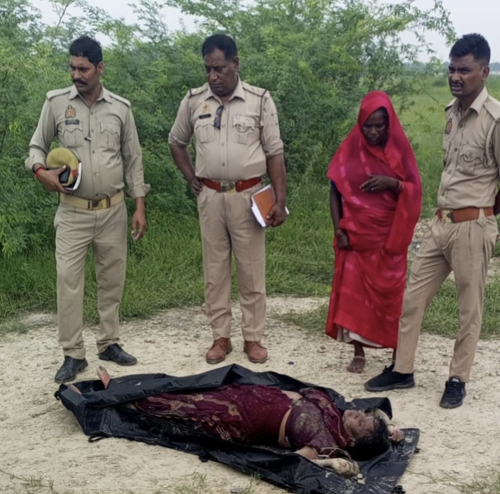 पानी भरे गड्ढे में मिली अज्ञात महिला की लाश, गांव में दहशत