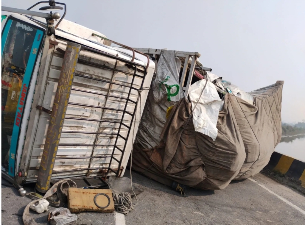 गौराबादशाहपुर बाईपास पर शराब लदा ट्रक पलटा, डेढ़ लाख की शराब बहकर हुई बर्बाद