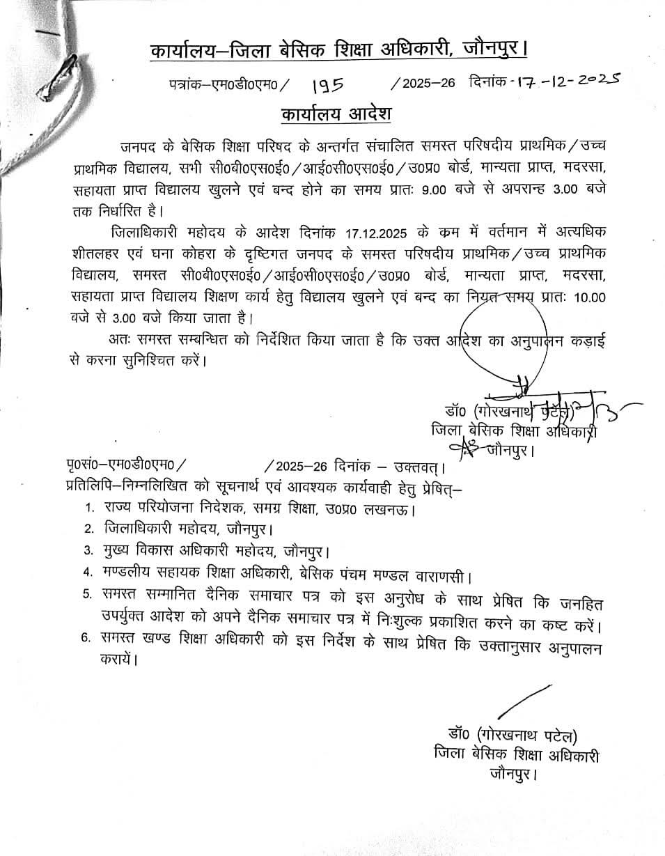 जौनपुर में कोहरे की चादर, ठंड ने बढ़ाई मुश्किलें; स्कूल टाइमिंग बदली